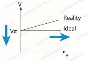 电光调制器的性能主要由几个参数决定,插损,半波电压,带宽和消光比等是最常见的。相对而言,最经常遇到的问题之一是半波电压随频率的变化,在不同的RF信号频率,调制器的RF半波电压不同(见下图),频率越高,半波电压也随之升高,这也直接影响调制器输出的光信号强度(强度调制器)和频谱分布(相位调制器)。而所有调制器生产商都只给出定点频率的半波电压值,通常为调制器的起始低频工作频率。而实际应用中,我们需要工作在不同的频率,甚至全频段扫频,那么了解调制器在不同频率下的半波电压对最终应用就显得尤其重要。本章节将介绍电光调制器全频段或定点频率的半波电压的测量方法。