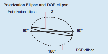 在这种情况下,DOP椭圆表示用于光纤对准E,其中模拟了使用旋转线性偏振器的偏振测量。DOP椭圆(虚线)变成一个圆,表示完全去偏(消偏)的光。