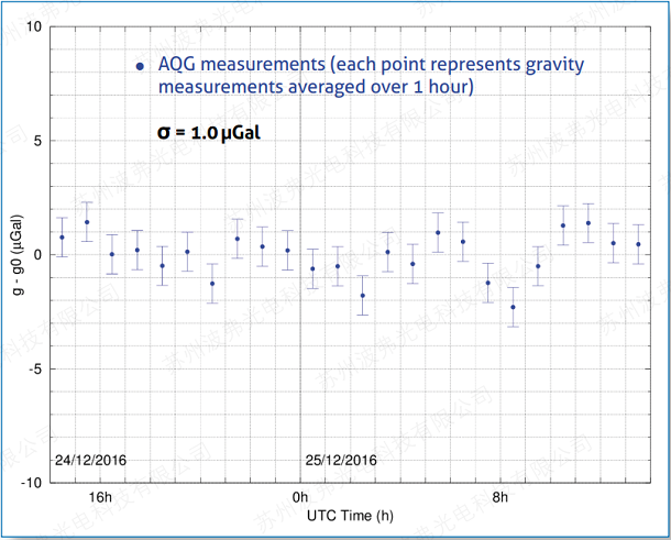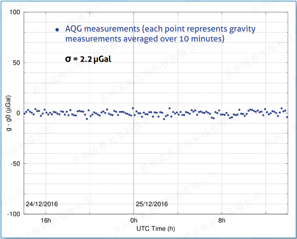 这个不间断的时间序列已经持续了一个月,并显示了当地的潮汐。当数据长期平均时持续时间,AQG 提供无漂移的亚 µGal 稳定性。
