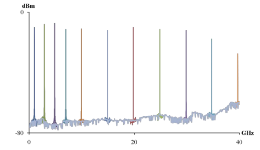 通过光接收器和射频频谱分析仪测量的样本外差信号。